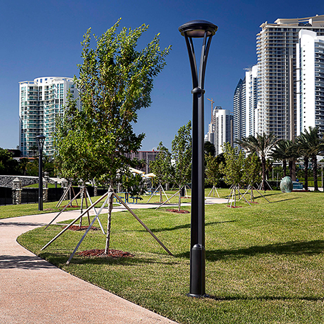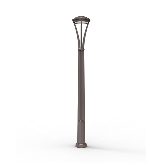 The twelve foot tall Alcott pedestrian light is a contemporary interpretation of a traditional lamp post. Its gently curved posts terminate in a domed LED luminaire, sealed with a thermoformed lens. Concord features refined design that is informed by the past and contemporary in spirit, offering a distinctive design perspective for creating a sense of place.