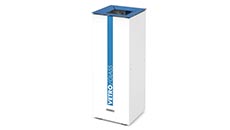 Rectangular litter bin composed of a thick steel sheet supporting structure, closed by steel sheet panel at the rear and by three doors with snap lock at the front. It is equipped with rain cover, three conveyors for the insertion of waste and three bag holder rings for separate collection.