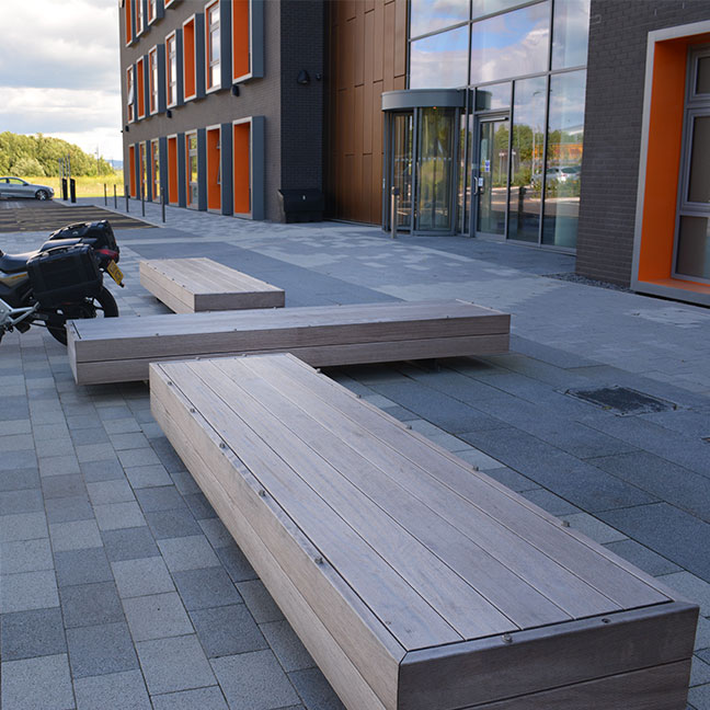 Products Used: Word Bollard, Big Harris bench (with bespoke skate deterrents), Box Litter Bin