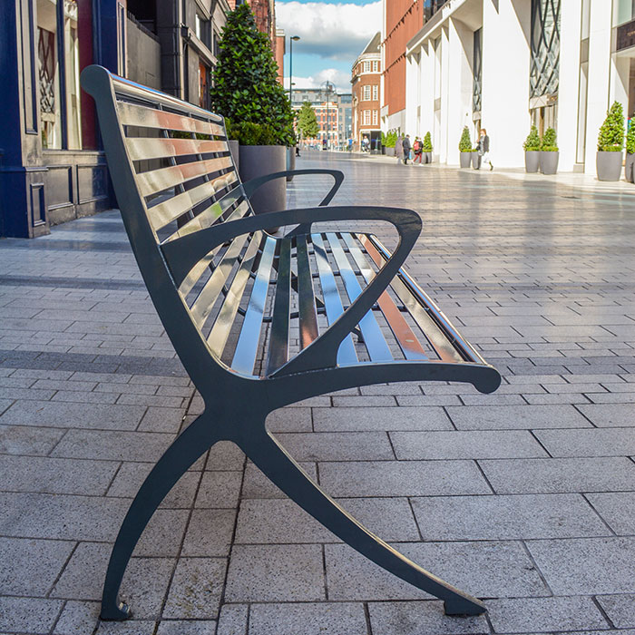 The traditional seating and cycle stand designs were pivotal in the selection process, ensuring that they integrated with the timeless character of Victoria Gate. The distinctive diamond shaped latticework covering the roof of the complex is echoed in the Parc Vue seat and the Loop cycle stand, making them the perfect addition to complement this impressive architectural structure.