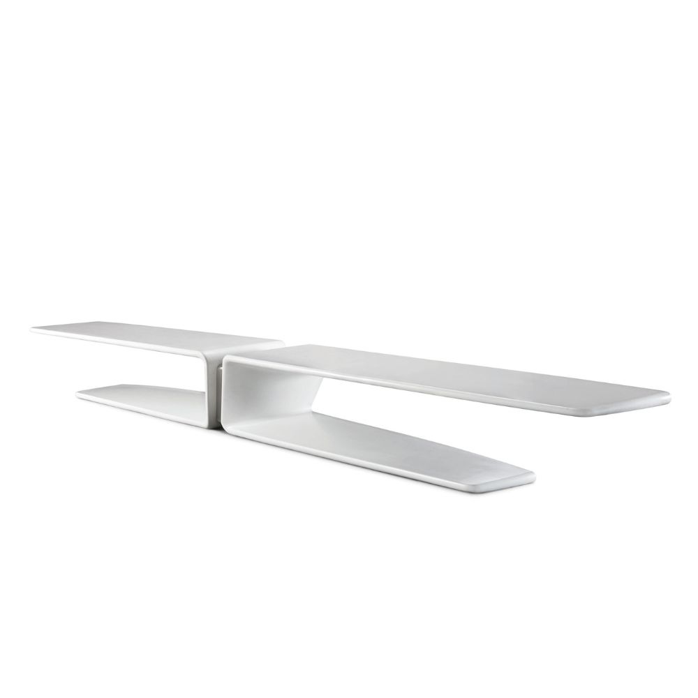 Collection of benches without backrest in HPC (High Performance Concrete), composed of a structure with two cantilevered seats. The single version can be a right facing seat or a left facing seat. The double version is joined by a steel sheet element and is available with or without USB charging socket.