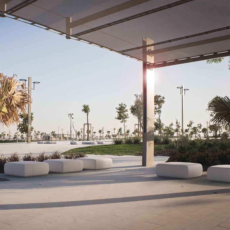 The Jasper Bench is a square shaped pouf made of HPC (High Performance Concrete), partially emptied inside. Two versions; with or without backrest in HPC, are available. The seats can be installed individually or in composition.