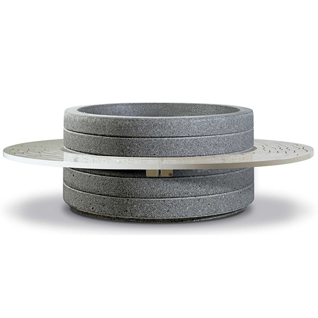 The Onice Planter is made using a binding compound of granite or coloured marble aggregate which is bushhammered around the edges and polished to a shine on the upper side. The surface is protected by special satin opaque varnish. The planters are offered in three sizes and have a 40x50mm section recess which has been designed to facilitate cleaning the surrounding area. Inside there are 3 galvanised eyebolts for handling. Each planter can hold a permanent 50L to 100L water reserve. The two larger sizes can be supplied with a circular, decorated thick steel sheet bench which is welded to thick double steel supports and twenty intermediate strengthening ribs. The inner and outer external edge is pressed steel. The bench is fastened to the planter by sixteen steel screw anchors. All material is hot dipped galvanised and powder coated, a variety of colours available.