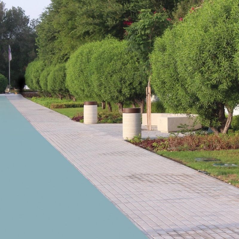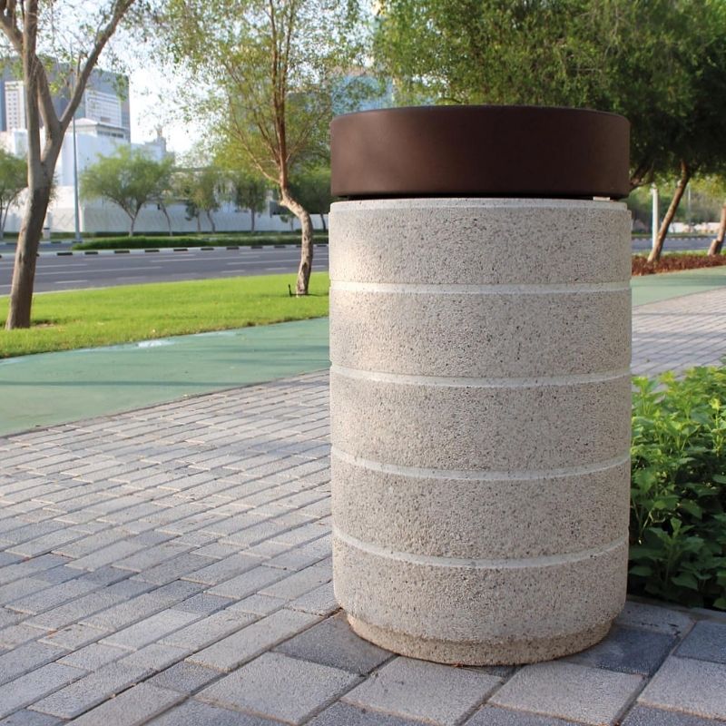 The Rubino Litter Bin is created by using a binding compound of granite or coloured marble aggregate. The Rubino is a superior alternative to standard concrete litter bins seen within public urban settings. It is bush hammered around the edges and polished to a shine on the upper side, with 15mm horizontal profiling, treated against deterioration. It is supplied with a ring-shaped cover in galvanised and powdercoated steel with a triangular lock, also with an ashtray and stainless steel anti-theft cable. The waste-sack holder is fitted inside. Alternatively, an internal galvanised steel container with handle can be requested.